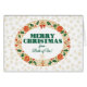 A festive Christmas card for a Wonderful Babysitter, with a Christmas wreath of Holly, Ivy, Poinsettias, Fir Cones, Christmas Roses and a matching red bow, outlined in gold-effect, with gold-effect snowflakes on a white background. A custom front card is also available.
