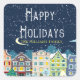Our "Christmas house in snow" collection features colourful and decorative house illustration in a row with street lights, trees and Christmas tree. Background is blue or navy blue depending if it shows night or day with snow overlay. Decorative script combined with serif font for all information that needs to be customised is a perfect combination. Decorative script "happy holidays" pairs wonderfully with illustrations and make a great envelope seal or gifts sticker that is going to stand out in the crowd. Check our store for more matching items from this collection.