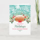 Fun Christmas card for holiday baking featuring a loaf of bread, holly and snowflakes, personalised with your text on the front and inside and choice of colour scheme, perfect for gifting your list with homemade baked goods.