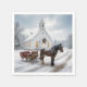 Christmas Horse-Drawn Sleigh Waiting By a Chapel Napkin