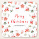 This elegant and festive coaster features watercolor hot cocoa, gingerbread cookie jar, red poinsettia flowers, holly berries and foliage. The text combines handwritten script and sans serif fonts for a stylish and modern look. This is perfect for Christmas parties.