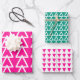 Christmas Hot Pink and Green Triangle Pattern Wrapping Paper Sheet