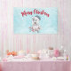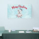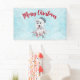 Christmas banner with a whimsical and cute watercolor painting of a husky dog wearing a blue Santa hat.