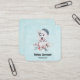 Business cards with a whimsical and cute watercolor painting of a husky dog wearing a blue Santa hat.