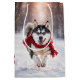 Christmas Husky With Red Scarf Medium Gift Bag