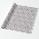 Husky dog with Christmas Santa Claus cap on light grey background and snowflakes.