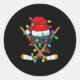 Christmas Ice Hockey Player Santa Hat Xmas Men Boy Classic Round Sticker