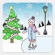Christmas Ice Skater on Snowy Winter Day Square Sticker