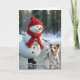 Christmas Ice Skating Snowman With Dog Holiday Card