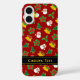 Set of christmas icons. Santas head, christmas tree, bells, christmas holly, and poinsettia. Custom background colour. Seamless pattern. Custom Text