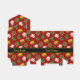 Set of christmas icons. Santas head, christmas tree, bells, christmas holly, and poinsettia. Custom background colour. Seamless pattern. Custom text.