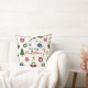 Christmas colourful surface pattern design with illustrations of a Christmas pudding, star, baubles, snowflakes, snowman, candy cane, Christmas tree, Christmas gift parcels and stocking.