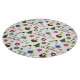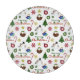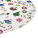 Christmas colourful surface pattern design with illustrations of a Christmas pudding, star, baubles, snowflakes, snowman, candy cane, Christmas tree, Christmas gift parcels and stocking.