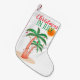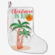 It is decorated with watercolor palm trees decorated like Christmas trees and a sun.