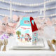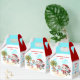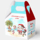 Christmas in July or Aussie Christmas large Gable Favour Boxes with a cute Santa Claus and his buddies on the beach. You can choose from 3 sizes of these gable favour boxes. Easily personalise the text - Kate Eden Art
