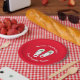 Christmas in July funny holy leaf beach sandals Paper Plate. Add your own surname and greeting. Red or custom colour. Disposable party supplies for garden party, BBQ, family reunion, gathering, dinner etc.