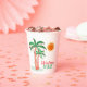 These colourful paper cups are decorated with watercolor palm trees and string lights.