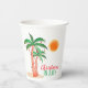 These colourful paper cups are decorated with watercolor palm trees and string lights.