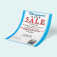 Christmas in July Sale. Jewelry or any business type supplies. Festive light blue and white border. Insert Sale price and date details. Upload Your Logo, or delete to leave area blank. Insert Name, Social Media Handle, and Website or other contact QR Code, or delete. Winter is written in sky blue azure blue script. Sale written in large red typography. Thank You is written inside large white heart on backside. Original Design by TamiraZDesigns.