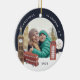 Celebrate a Christmas spent in London with this unique keepsake ornament. Design features a photo on each side, decorated with a hand illustrated Big Ben, double decker bus, and phone box. Personalise with the year.