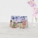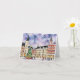 This holiday card features a watercolor portrait of Madrid during Christmas time.