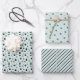 Add Parisian flair to all your holiday gifts with our chic Paris patterned wrapping paper in ethereal pastel mint green and classic black. Design features tiny snowflakes, Christmas trees, wrapped gifts, birds, croissants, macarons, roses, coffee cups, and of course, the Eiffel tower! Includes two coordinating gift wrap patterns in snowflakes and chic diagonal stripes.