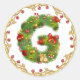 christmas initial G monogram sticker. This exquisite letter G xmas sticker will give your xmas a traditional touch with a modern personalised feel. Designed to look like a fir tree covered with presents and gifts this letter a on a circular sticker is surounded by a gold frame with red berries. Upmarket and on trend this is an affordable luxury for you holiday decor needs. With this green and red image on a snowy white background you will be bound to make an impact. Good for business use also. Full alphabet available.