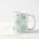 Modern festive green and white snowflake Christmas coffee or hot cocoa mug. Green snowflakes on white. Classic design fit for a joyful Christmas and a snowy winter new year celebration. This mug is a modern home decor item that makes a stylish, cute green Christmas gift or stocking stuffer.