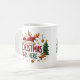 Festive 'Christmas is Here' mug design featuring cheerful lettering, Santa Claus, gingerbread, and holiday icons—perfect for sipping hot cocoa and spreading seasonal joy in 2024, 2025, and beyond! A delightful gift or personal keepsake for celebrating the holiday season.