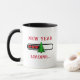 Get in the Christmas mood with this funny and simple coffee mug. The front has the phrase 'NEW YEAR LOADING '. In the middle of the phrase is a black rounded rectangle with red hearts loading towards a Christmas tree. The back of the mug has an image of a Christmas tree with a year. Easy to customise with your text and photos!