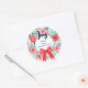 Christmas Joy Bow Wreath Blue Holiday Classic Round Sticker