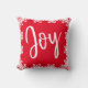 Christmas Joy Family Red White Script Snowflakes Cushion