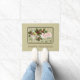 Sprigs of holly and mistletoe with berries, frame this old-fashioned winter scene. Greeting: May All ~ Christmas Joys Be Thine ~ Happy Holidays. Image of a Vintage Christmas Postcard on a custom grayish-yellow background.
