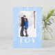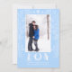 Christmas Joy Modern Floral Line Art Blue Photo Holiday Card