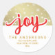 Christmas Joy Red and Gold Handwritten Address Classic Round Sticker