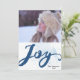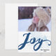 Celebrate the season with this Holiday card featuring the word "Joy" in a beautiful brush script font set against a light blue watercolor background. Customise by adding your photo, name and year. Festive and fun with an artistic flair, a card that's sure to bring joy and smiles to family and friends!