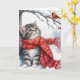 Christmas Kitty Watching a Cardinal Card
