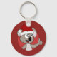 Keychain with illustration of cute little koala bear with Santa's hat in red circle, Christmas holidays design for children, illustrated by Radka Kavalcova