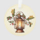A beautiful Christmas lantern, radiating a warm, yellow glow that illuminates the surrounding area. The lantern itself is a classic design, reminiscent of old-world charm, and it is set against a backdrop that is awash in the same soft, yellow light, creating an atmosphere of warmth and cosiness.