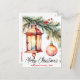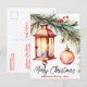 Christmas Lantern Pine Branch and Holly Berries Holiday Postcard