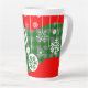 Available in 12 oz (small) and 17 oz (large) sizes, this ceramic mug is microwave and dishwasher safe. Its tall, curved shape is ideal for lattes, cappuccinos, or hot cocoa, combining practicality with seasonal charm.