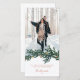 Step into a world of holiday enchantment with this charming Christmas photo card, adorned with a delightful watercolor pine tree branch illuminated by twinkling Christmas lights. The whimsical branch, with its intricate details and warm glow, sets the stage for a truly magical greeting.