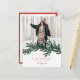 Step into a world of holiday enchantment with this charming Christmas photo card, adorned with a delightful watercolor pine tree branch illuminated by twinkling Christmas lights. The whimsical branch, with its intricate details and warm glow, sets the stage for a truly magical greeting.