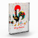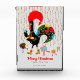 The "Christmas Lights and Baubles" illustration captures the festive spirit with a cute Portuguese rooster at its heart. The rooster's tail's black feathers are decorated with white dots, folk flowers and leaves, and a red heart. The rooster clutches Christmas baubles in its hand feathers as he walks towards home. Alongside, animated Christmas presents and baubles parade playfully, all marching towards home to decorate the Christmas tree. I guess we can say that it is looking a lot like Christmas! A luminous curtain of twinkling lights drapes behind, casting a magical aura. This enchanting scene blends tradition and whimsy in perfect harmony.