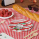 Christmas lights Gnome On Candy Cane Glitter Paper Plate
