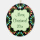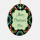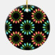 This festive holiday ornament design features circles made up of graphic Christmas light bulbs in colours of red, orange, green and blue.