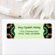 This easy to personalise address label features a festive holiday pattern made up of circles made up of graphic Christmas light bulbs in colours of red, orange, green and blue.