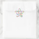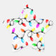 Colorful Christmas string lights with red, orange, yellow, light blue, pink, aqua, and green colors on a black cord in the snow. The retro lights my family used when I was a child inspired me to design this pattern. The snowy background is from an actual photograph. It's shown here on festive star shaped stickers that you can customize any way you like. Choose from other shapes and sizes if desired. This unique string lights in the snow design is great for accenting greeting cards, envelopes, treat bags, scrapbooks, and so much more!