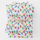 Colorful Christmas string lights with red, orange, yellow, light blue, pink, aqua, and green colors on a black cord in the snow. The retro lights my family used when I was a child inspired me to design this pattern. The snowy background is from an actual photograph. It's shown here on festive gift wrapping paper sheets. You can adjust the pattern size on each sheet. Wrap your Christmas gifts with this unique string lights in the snow design!