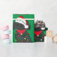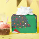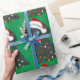 Cute Cartoon Labradoodle Puppy wearing "Tis The Season" Santa hat, wrapped in christmas lights.